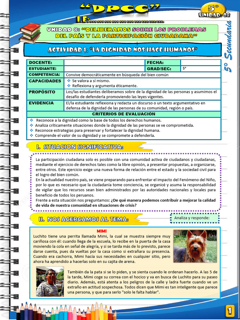 ❖ Analiza críticamente situaciones donde la dignidad de las personas se ve comprometida.