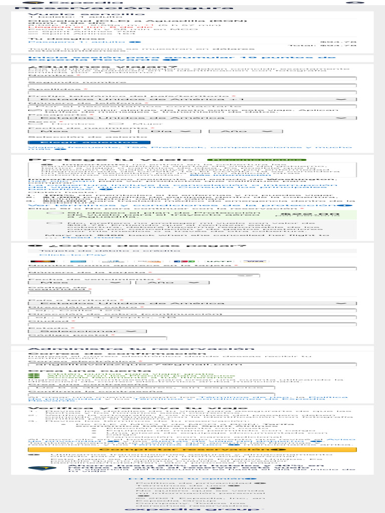 (aerolínea/hotel/tren, etc.) procese el pago.