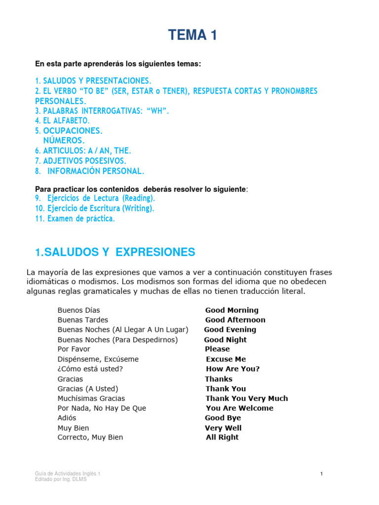 1. SALUDOS Y EXPRESIONES
