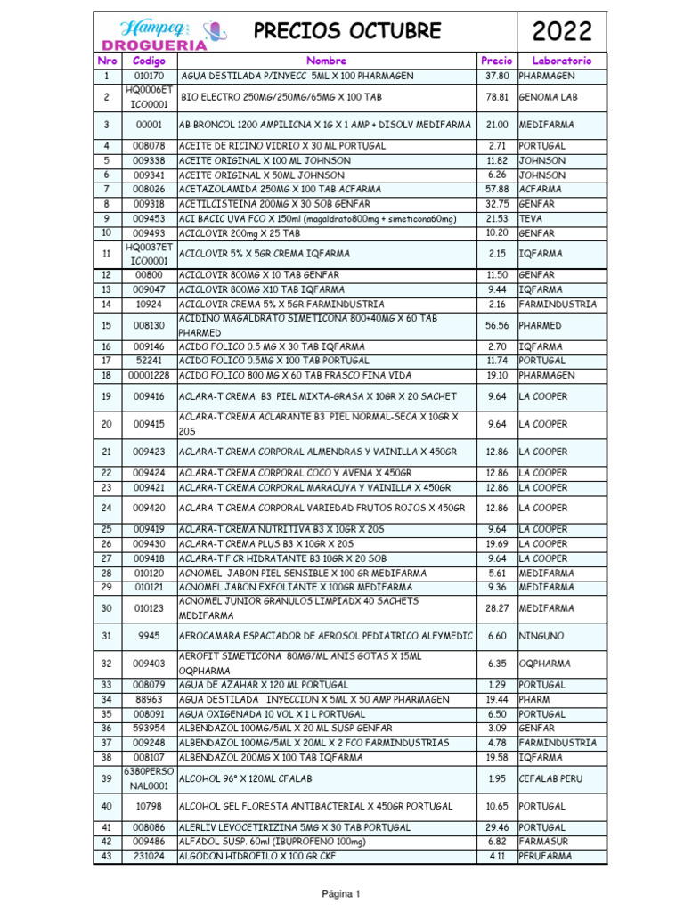 PRECIOS OCTUBRE 2022