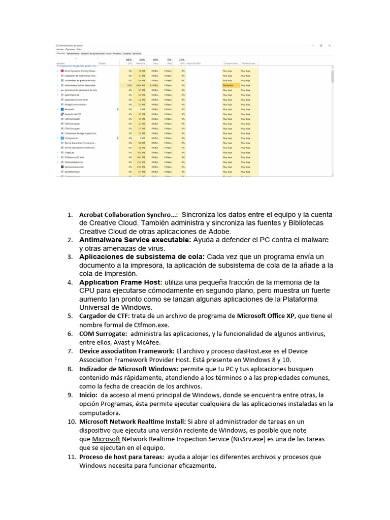 11. Proceso de host para tareas: ayuda a alojar los diferentes archivos y procesos que