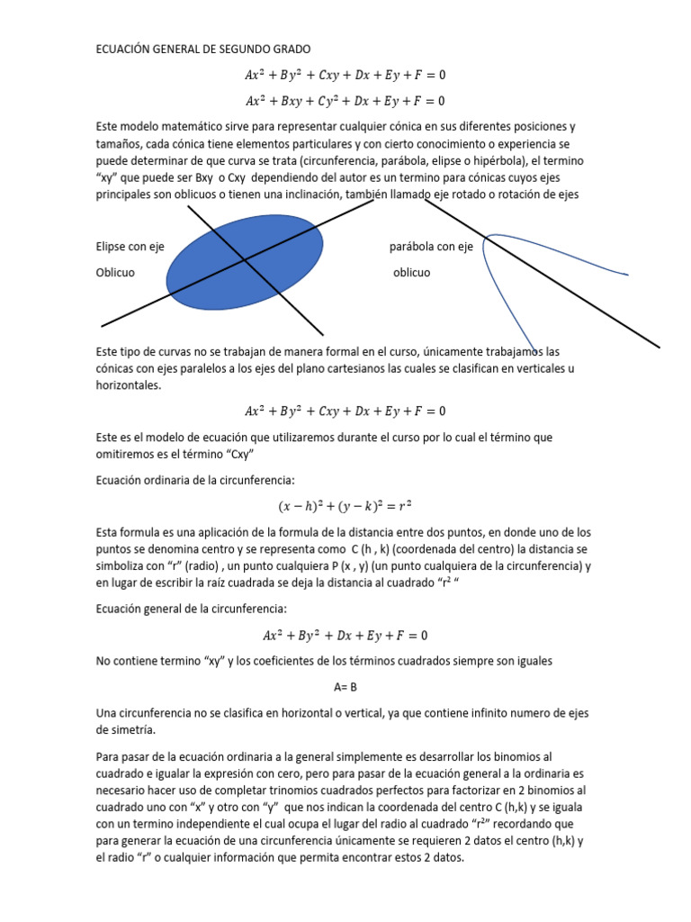 Este modelo matemático sirve para representar cualquier cónica en sus diferentes posiciones y