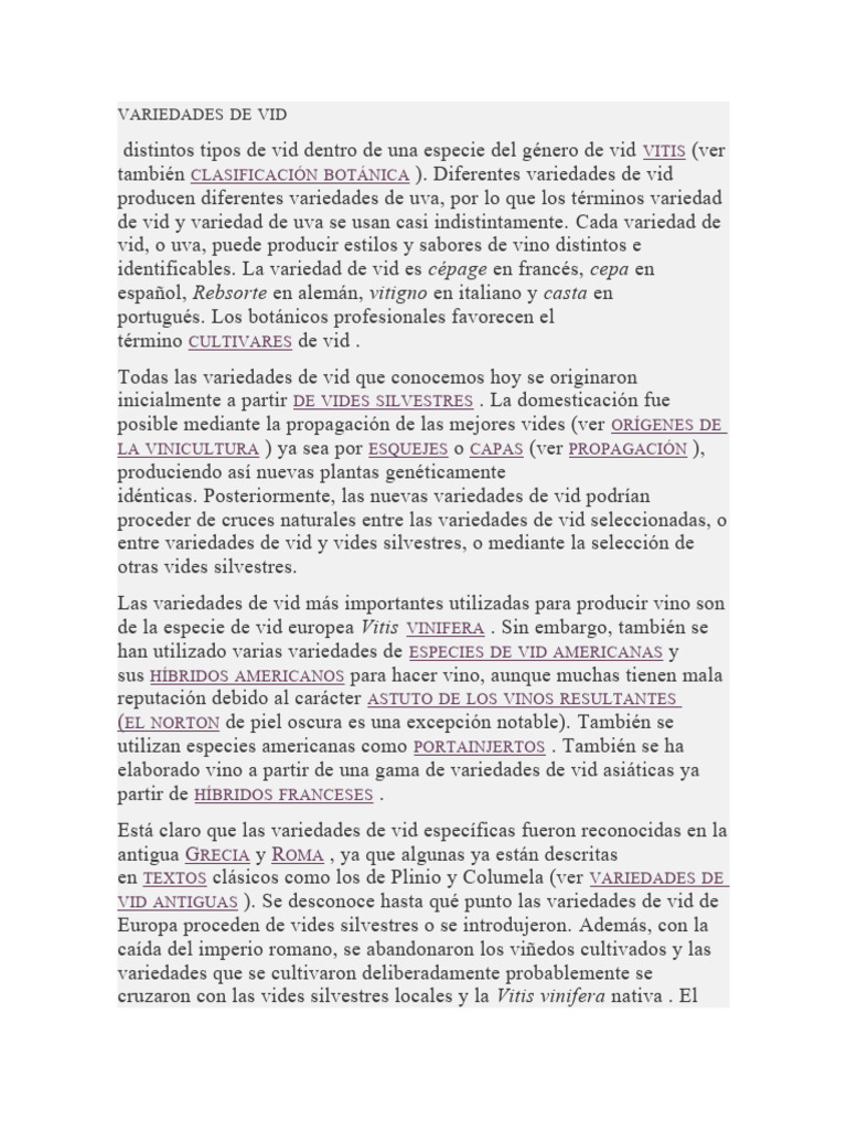 VID ANTIGUAS ). Se desconoce hasta qué punto las variedades de vid de
