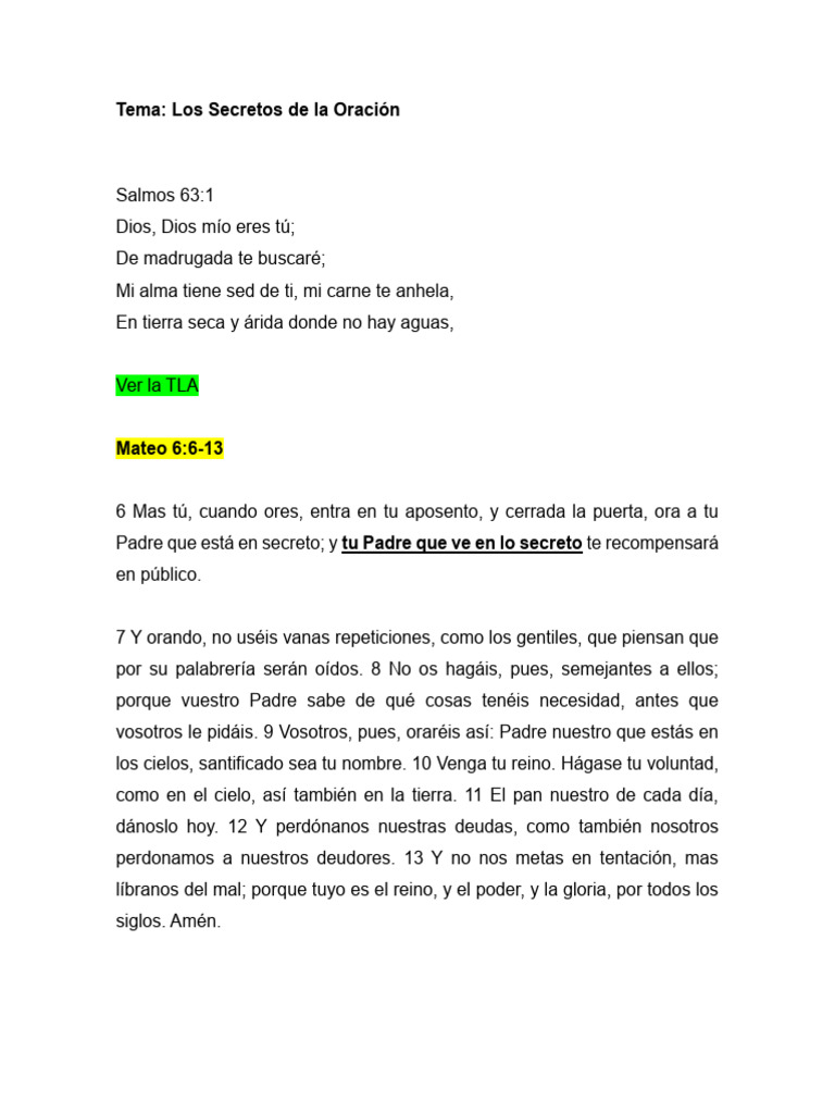 Tema: Los Secretos de la Oración