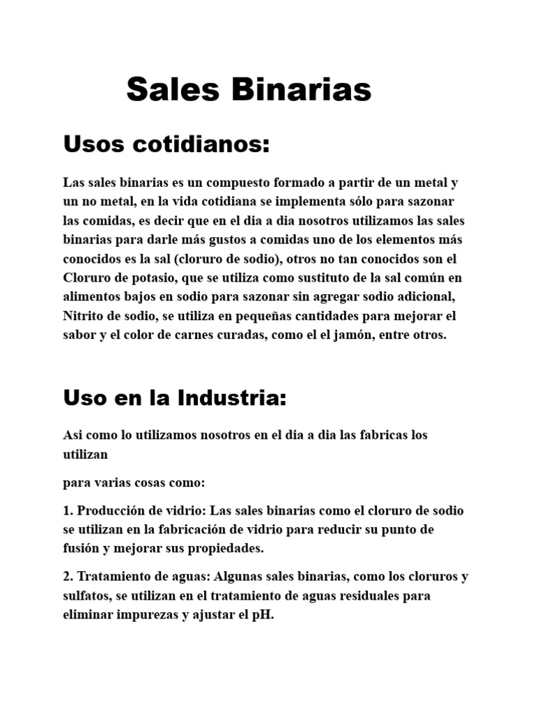 1. como ya se a mencionado antes las sales binarias son un