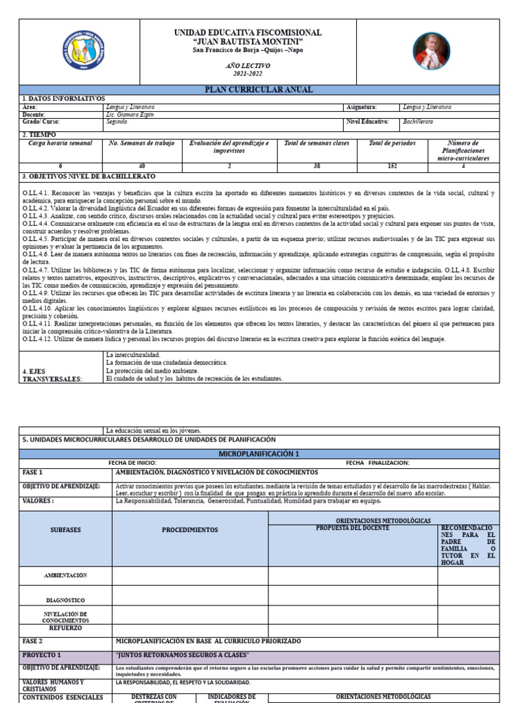 Lcda. Giomara Espín COORDINADOR DE ÁREA DE LENGUA Y Lcda. Blanca Agreda
