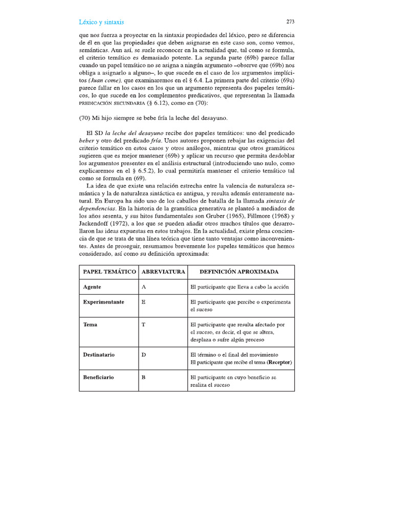 (os (Juan come), que examinaremos en el § 6.4. La primera parte del criterio (69a)