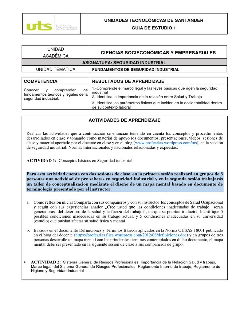 ACTIVIDAD 1: Conceptos básicos en Seguridad industrial