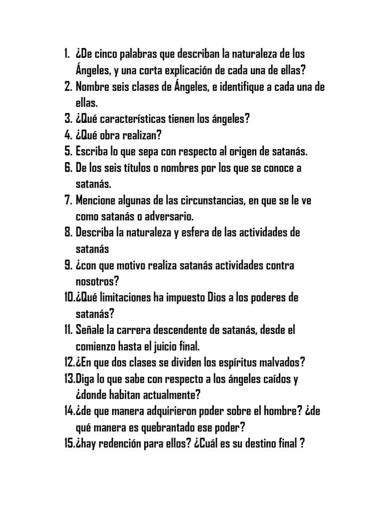 5. Escriba lo que sepa con respecto al origen de satanás.