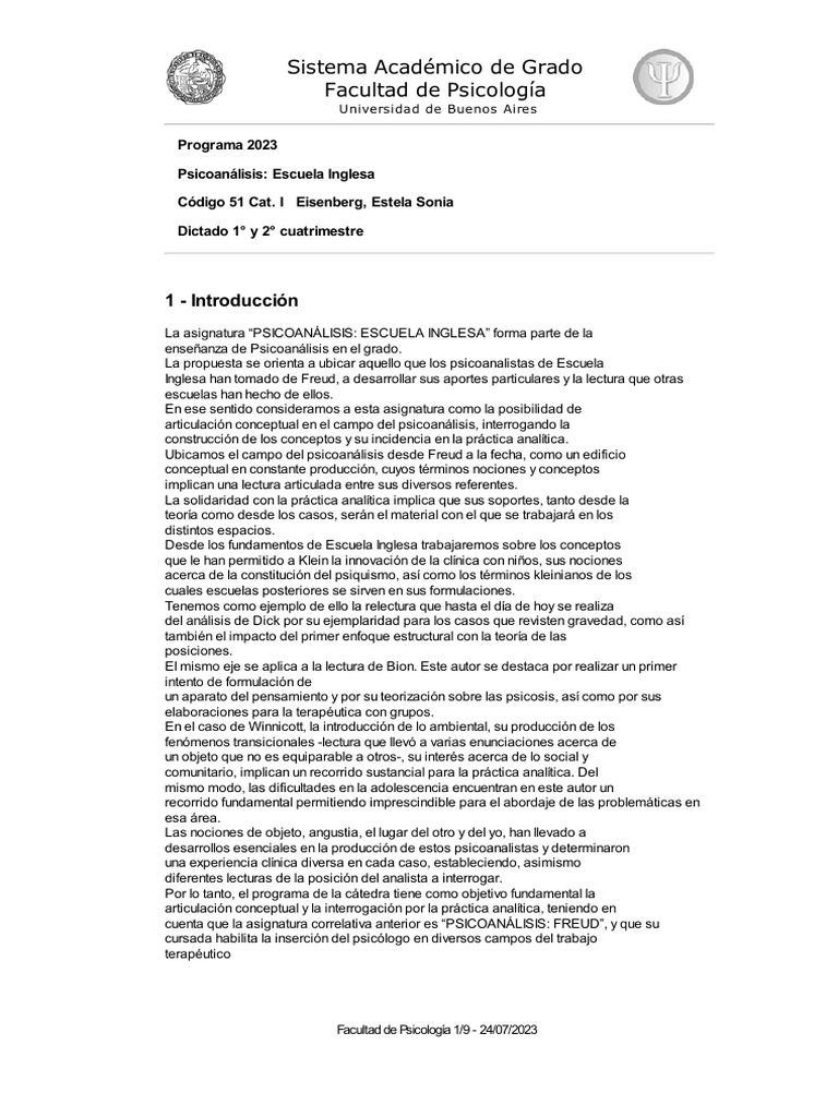 Facultad de Psicología 1/9 - 24/07/2023
