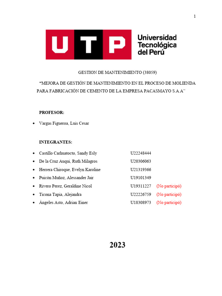 Durante el año, se ha presentado fallas técnicas en nuestro Molino triturador de Cemento, donde