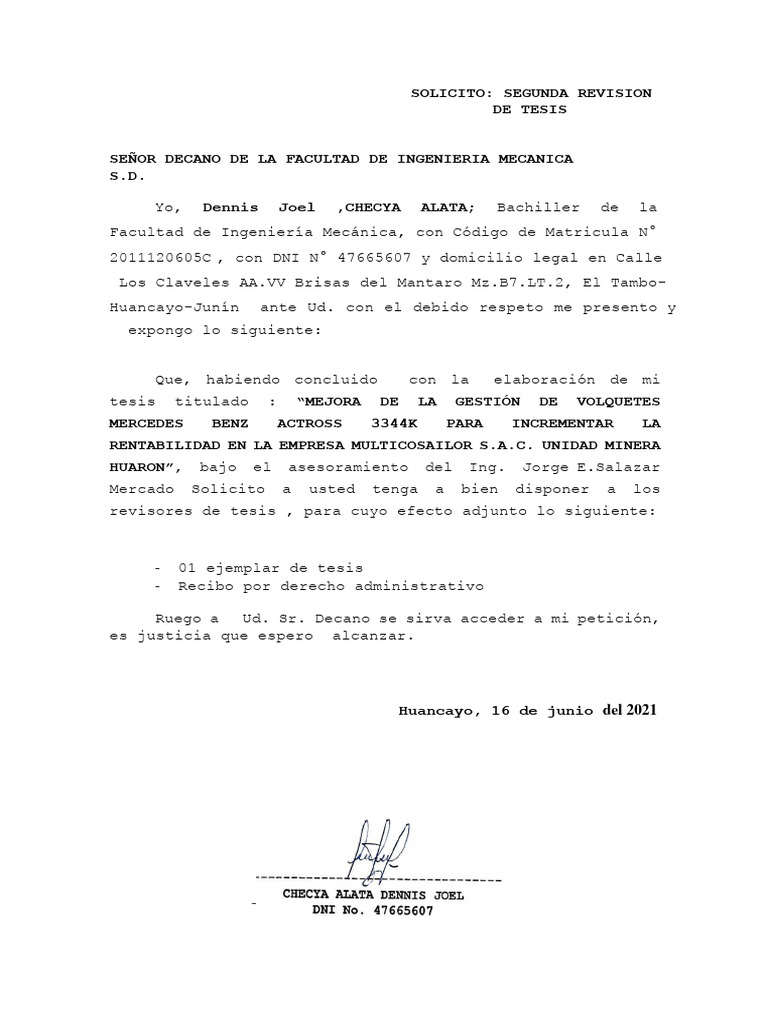Huancayo-Junín ante Ud. con el debido respeto me presento y