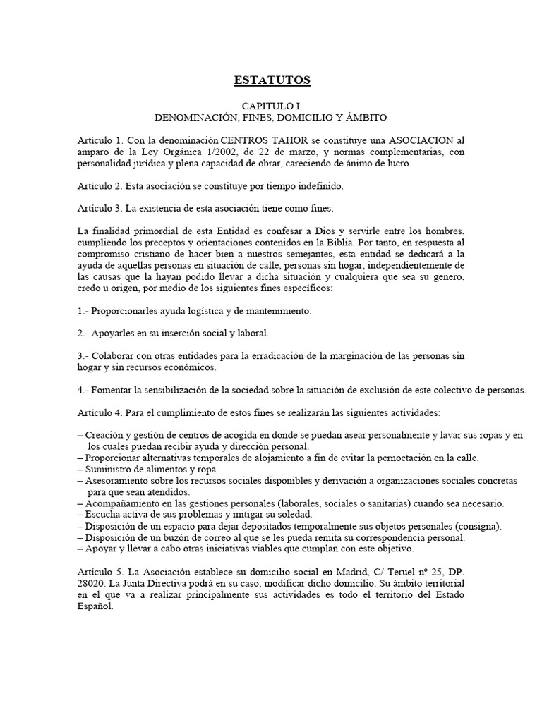 Artículo 1. Con la denominación CENTROS TAHOR se constituye una ASOCIACION al