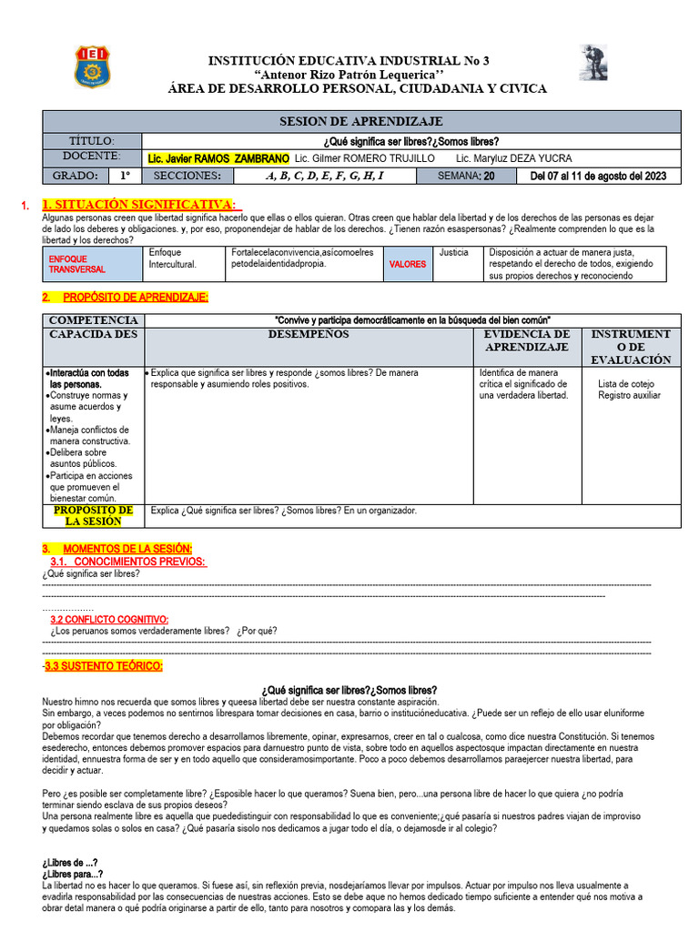 Interactúa con todas Explica que significa ser libres y responde ¿somos libres? De manera Identifica de manera