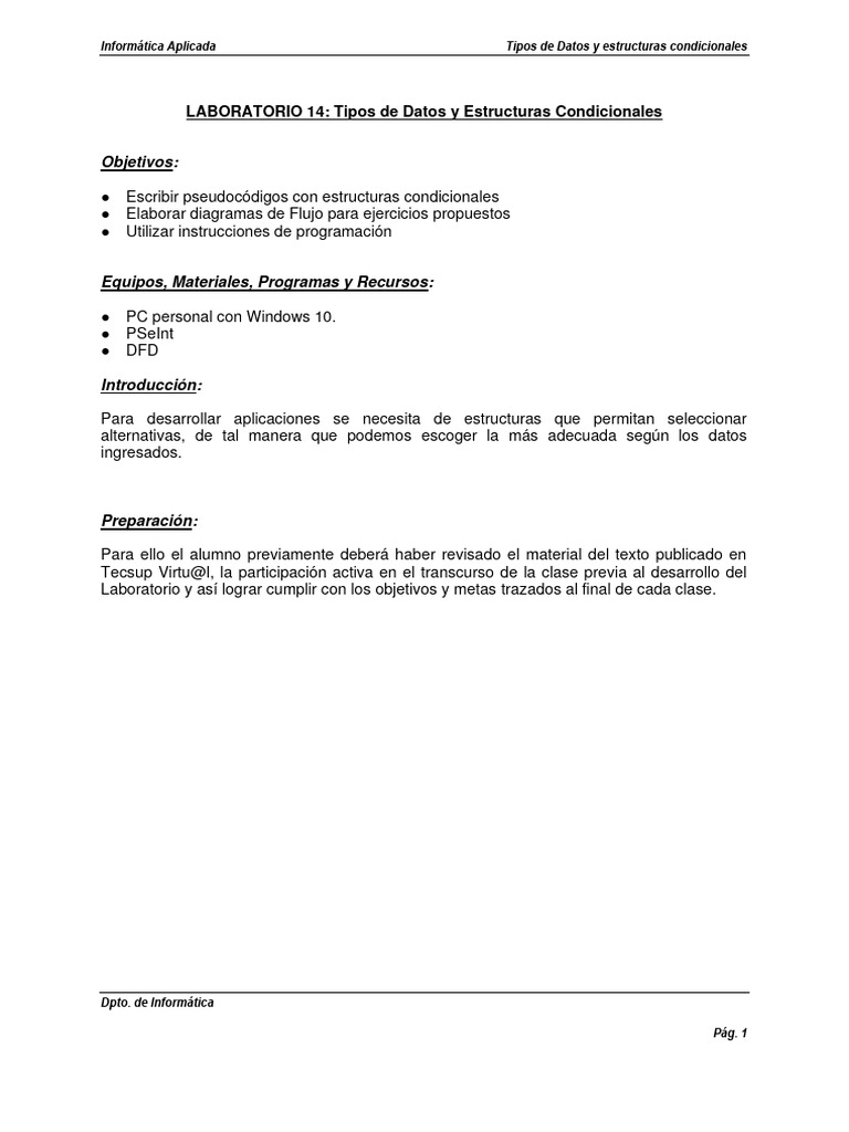 LABORATORIO 14: Tipos de Datos y Estructuras Condicionales