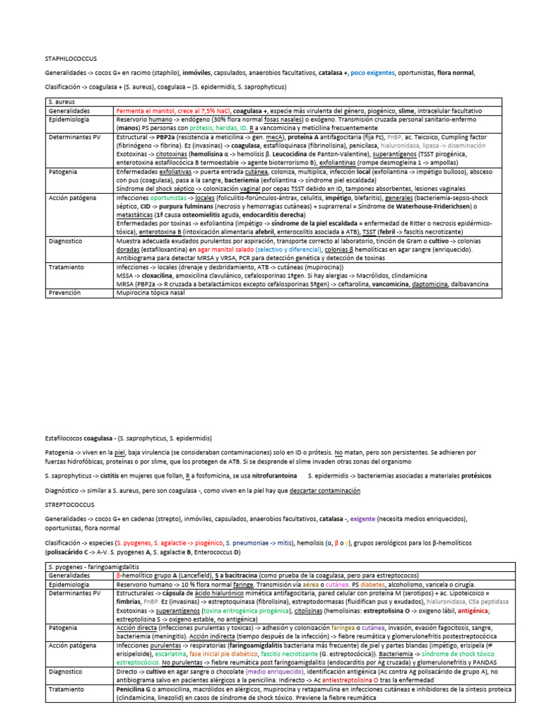 D Flora normal colon, transmisión por fómites, diagnóstico directo (= S. pyogenes), medios selectivo-diferenciales. Antibiograma