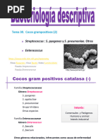 Generalidades -> cocos G+ en cadenas (strepto), inmóviles, capsulados, anaerobios facultativos, catalasa -, exigente (necesita medios enriquecidos),