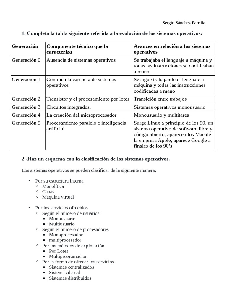 1. Completa la tabla siguiente referida a la evolución de los sistemas operativos: