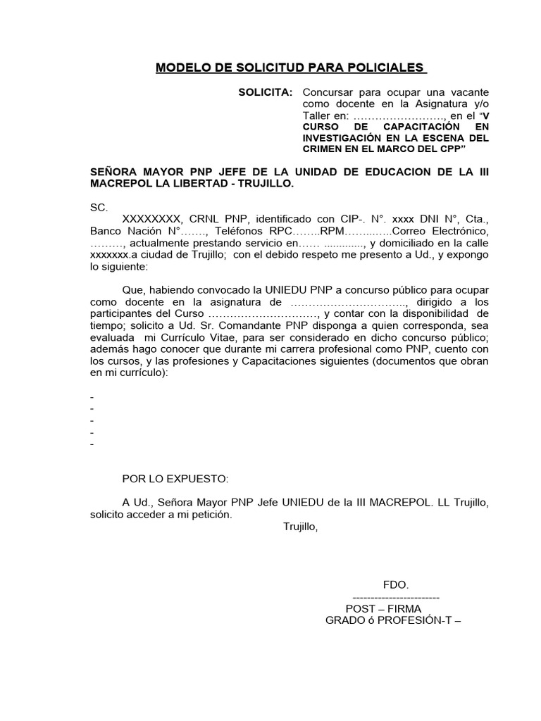 xxxxxxx.a ciudad de Trujillo; con el debido respeto me presento a Ud., y expongo