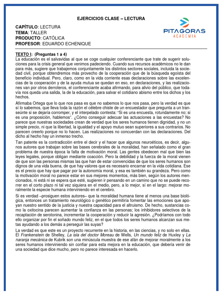 4. Señale el texto con una estructura análoga a la del cuarto párrafo.