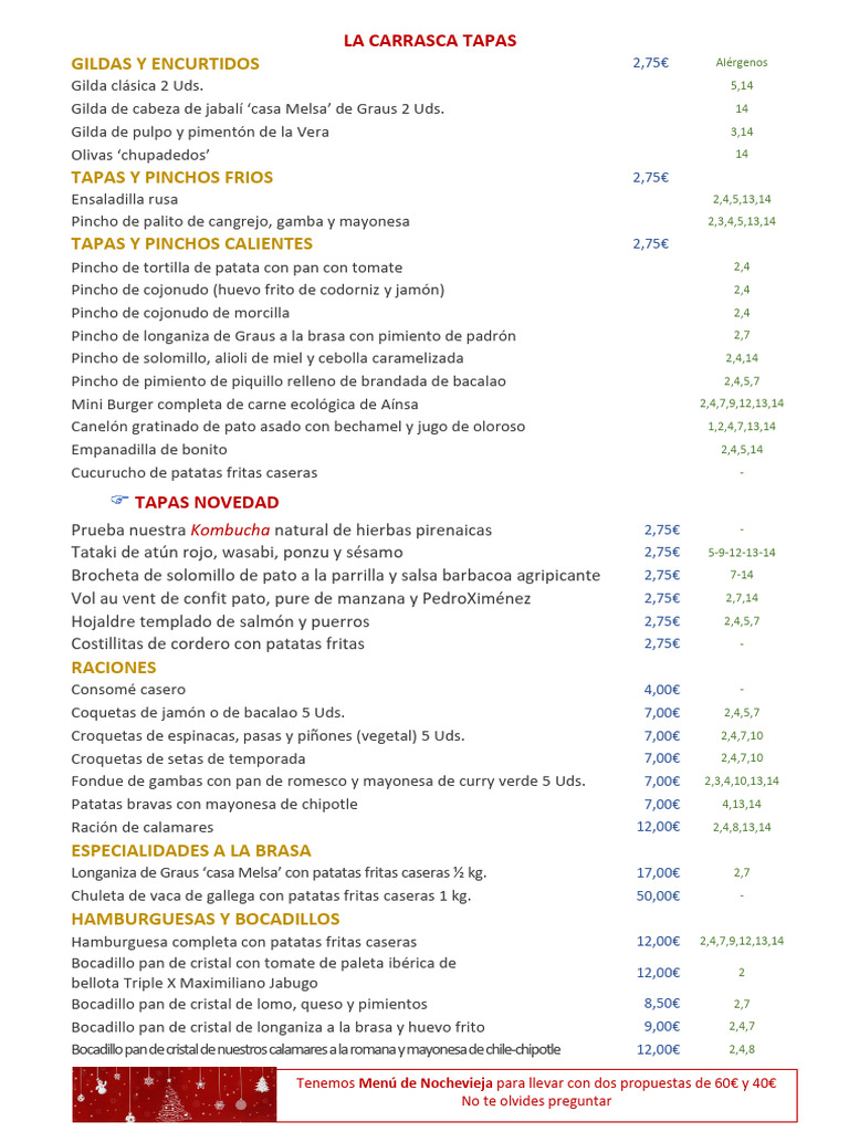 Tenemos Menú de Nochevieja para llevar con dos propuestas de 60€ y 40€