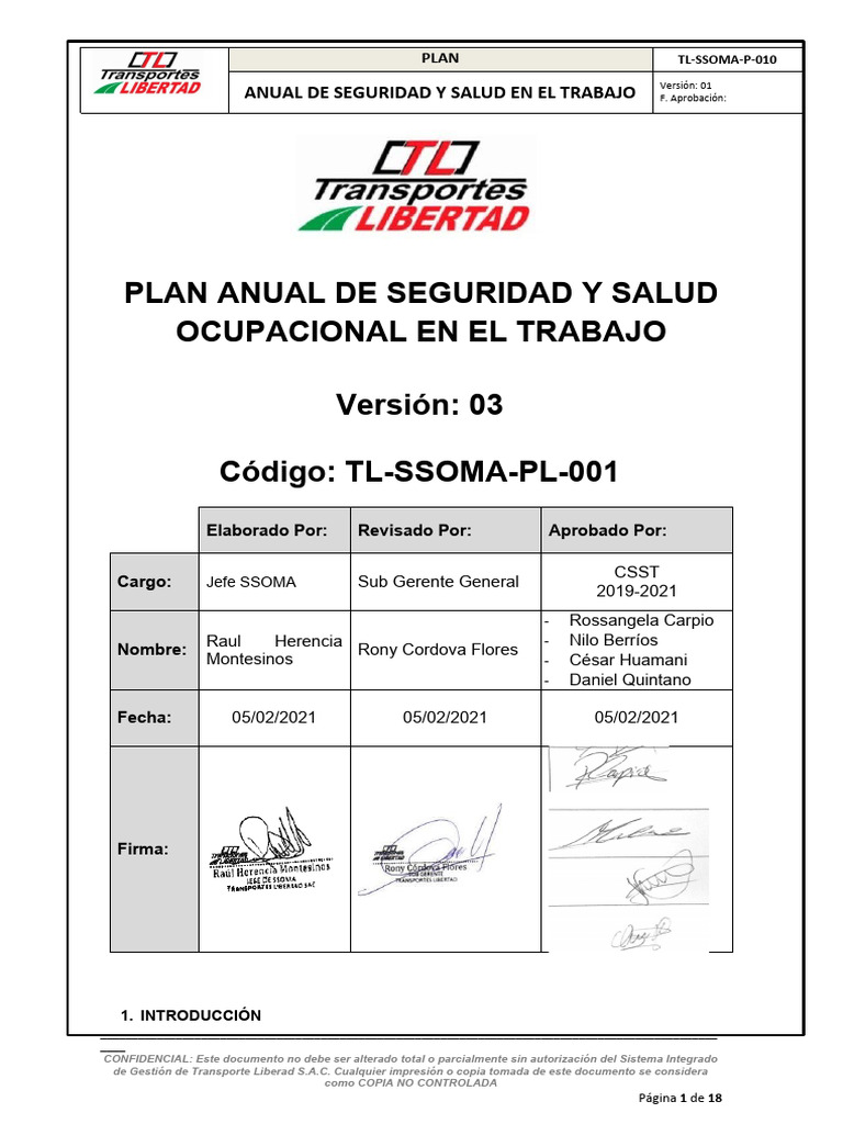 de Gestión de Transporte Liberad S.A.C. Cualquier impresión o copia tomada de este documento se considera