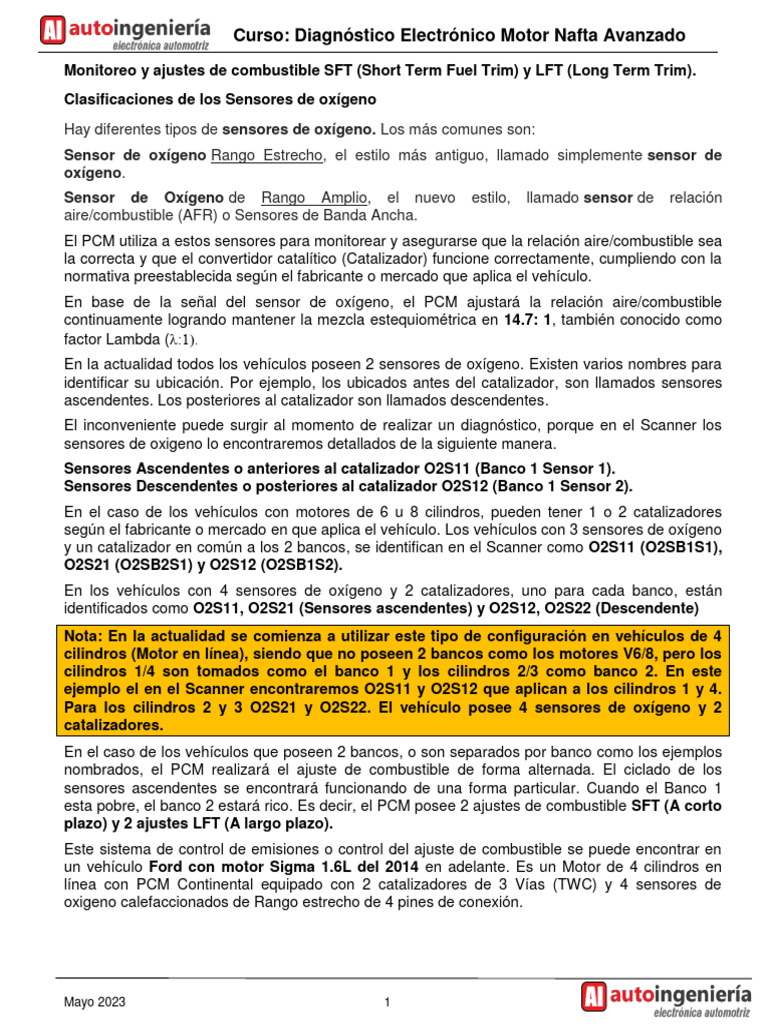 esta pobre, el banco 2 estará rico. Es decir, el PCM posee 2 ajustes de combustible SFT (A corto