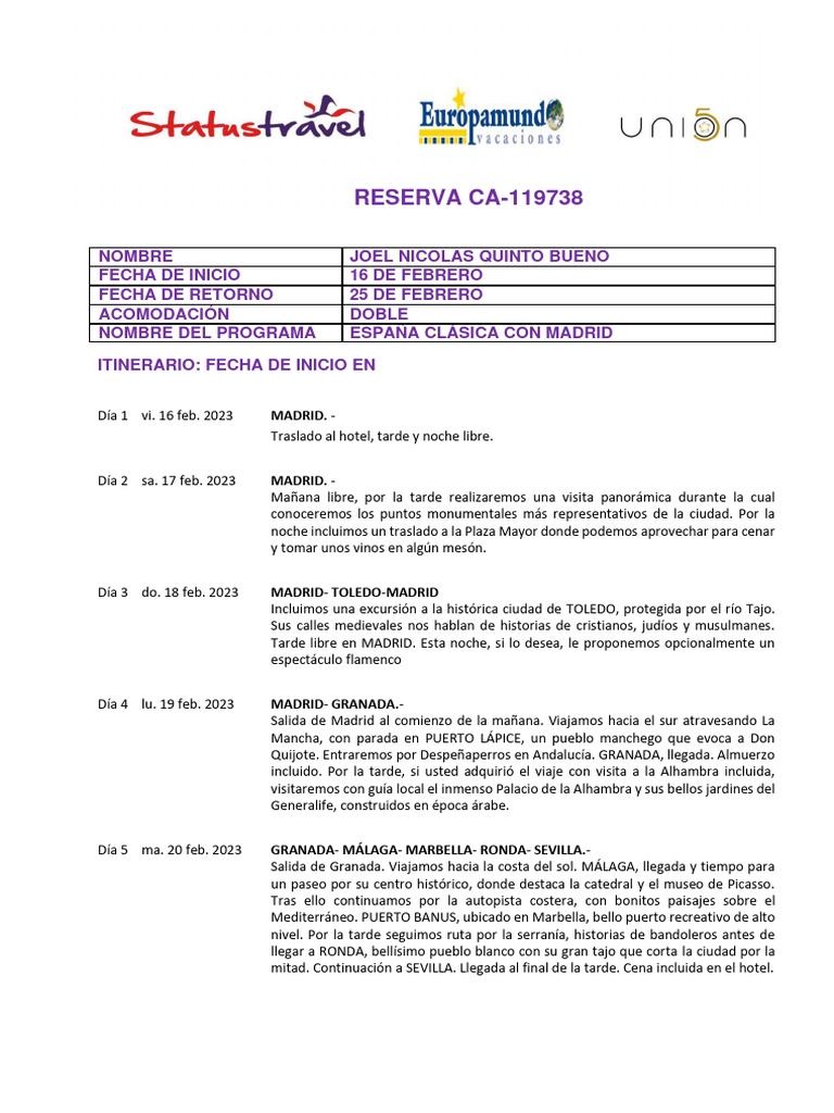 Día 4 lu. 19 feb. 2023 MADRID- GRANADA.-