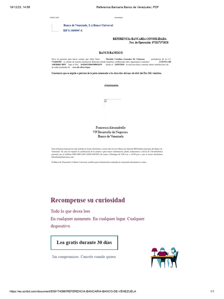 19/12/23, 14:56 Referencia Bancaria Banco de Venezuela | PDF