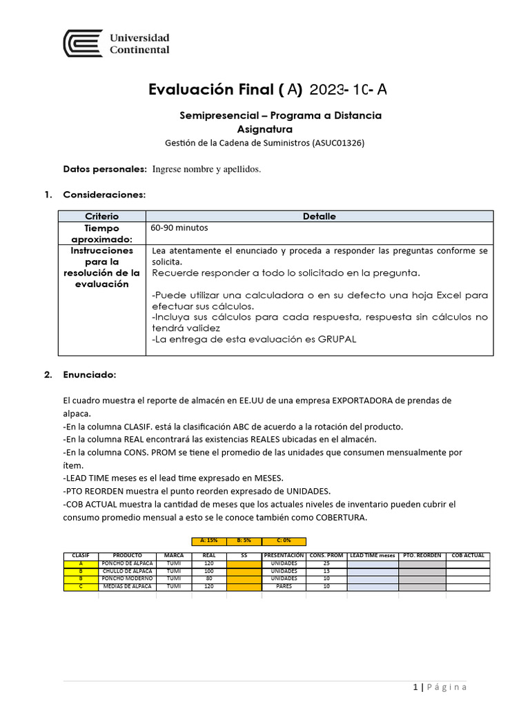 Evaluación Final ( A) 2023- 10- A