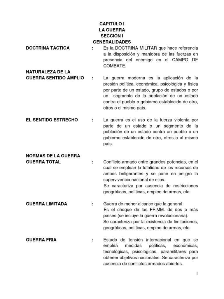 DOCTRINA TACTICA : Es la DOCTRINA MILITAR que hace referencia
