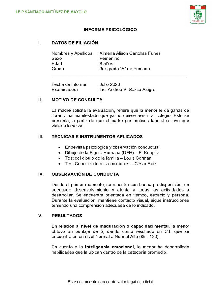 Nombres y Apellidos : Ximena Alison Canchas Funes