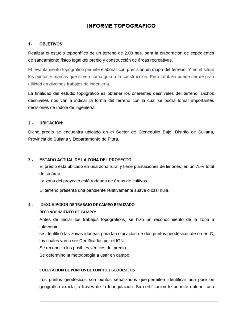 ser los levantamientos topográficos y replanteos de puntos o vértices del predio.