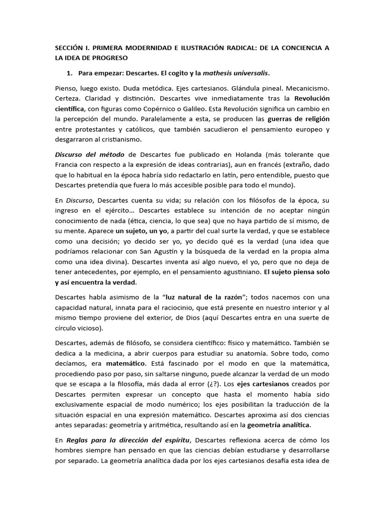 Pienso, luego existo. Duda metódica. Ejes cartesianos. Glándula pineal. Mecanicismo.