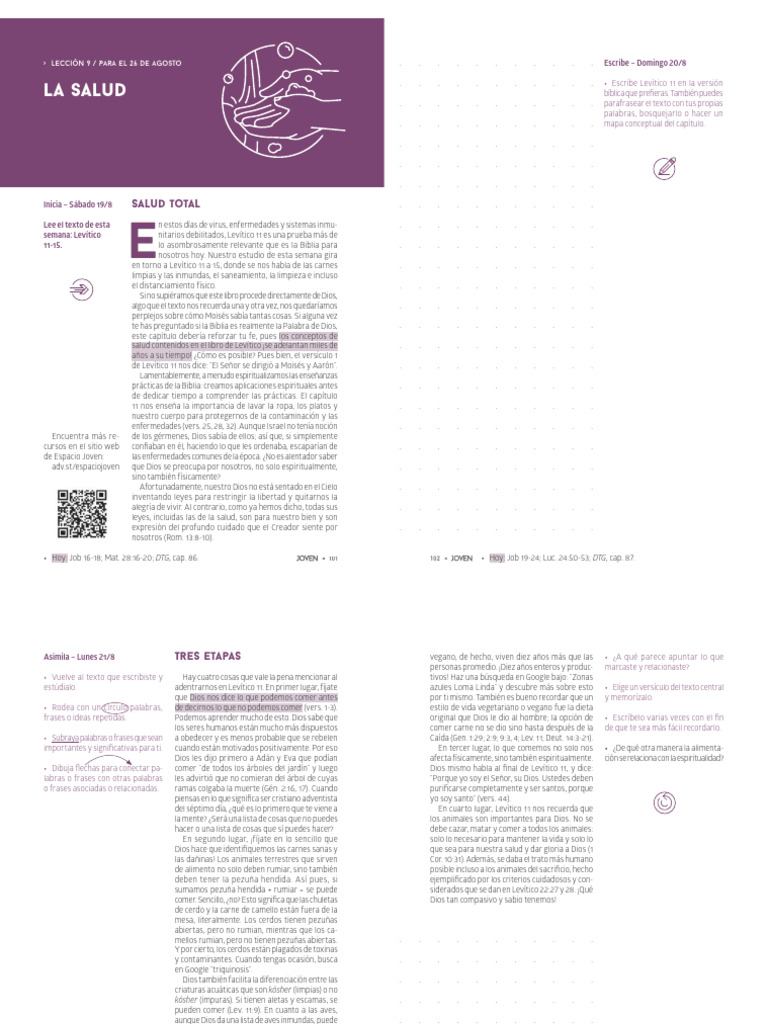 estúdialo. adentrarnos en Levítico 11. En primer lugar, fíjate azules Loma Linda” y descubre más sobre esto • Elige un versículo del texto central