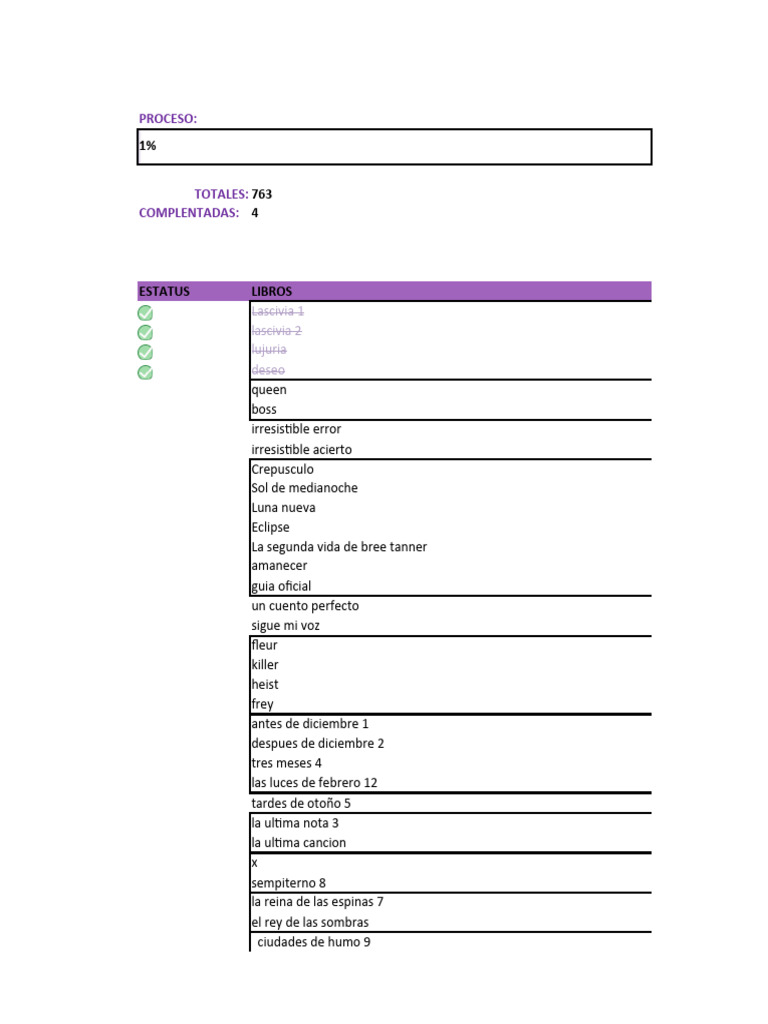 Lista, Libros, Series Excel