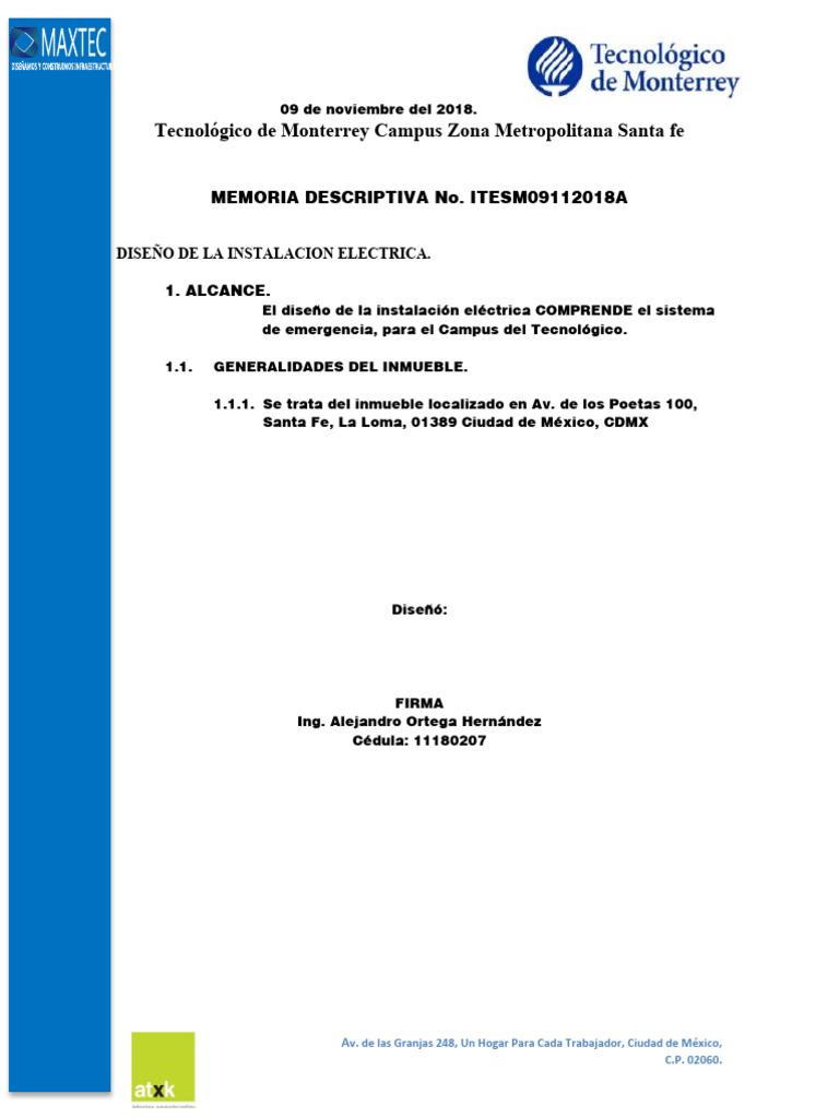 MEMORIA DESCRIPTIVA No. ITESM09112018A