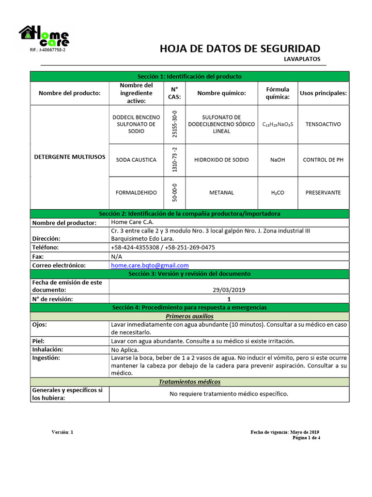 La presente hoja de datos de seguridad está elaborada acorde a los requisitos de la