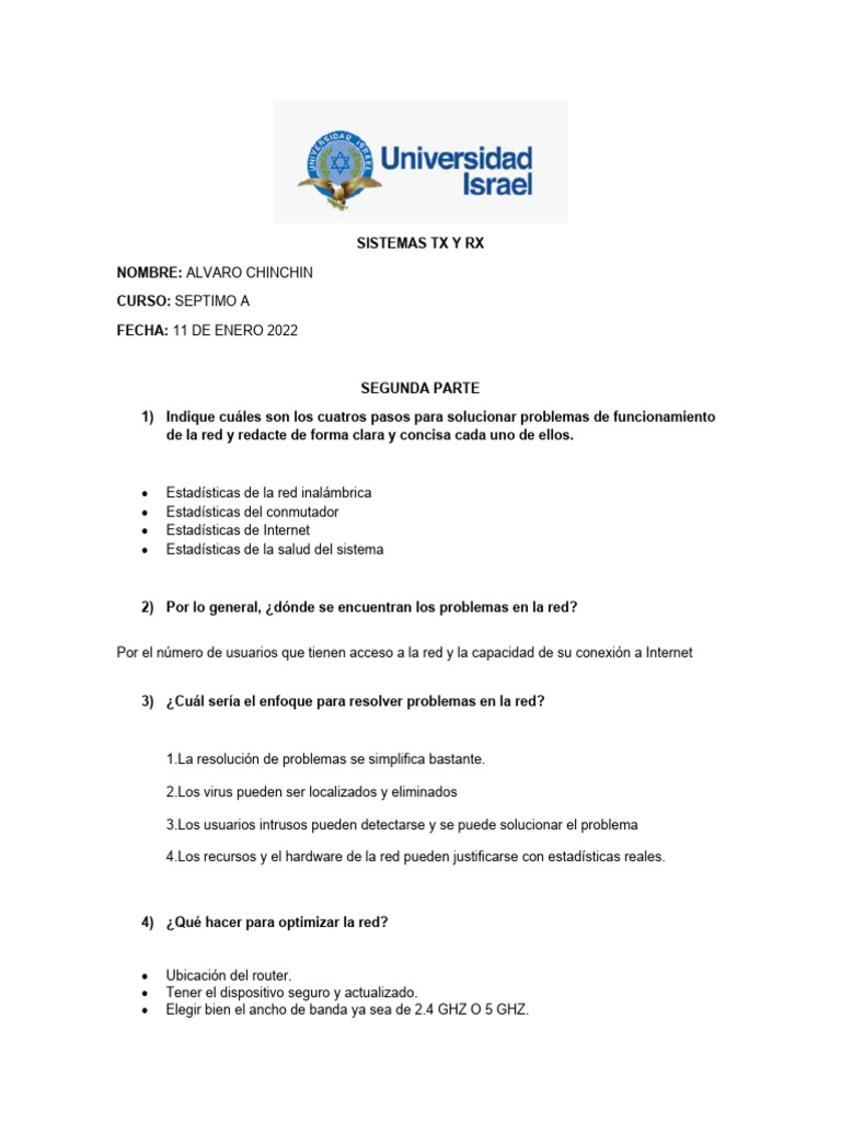 al momento de solucionar problemas de la red y redacte de forma clara y concisa