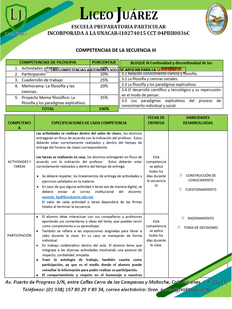 COMPETENCIAS DE FILOSOFIA PORCENTAJE BLOQUE III Continuidad y discontinuidad de los