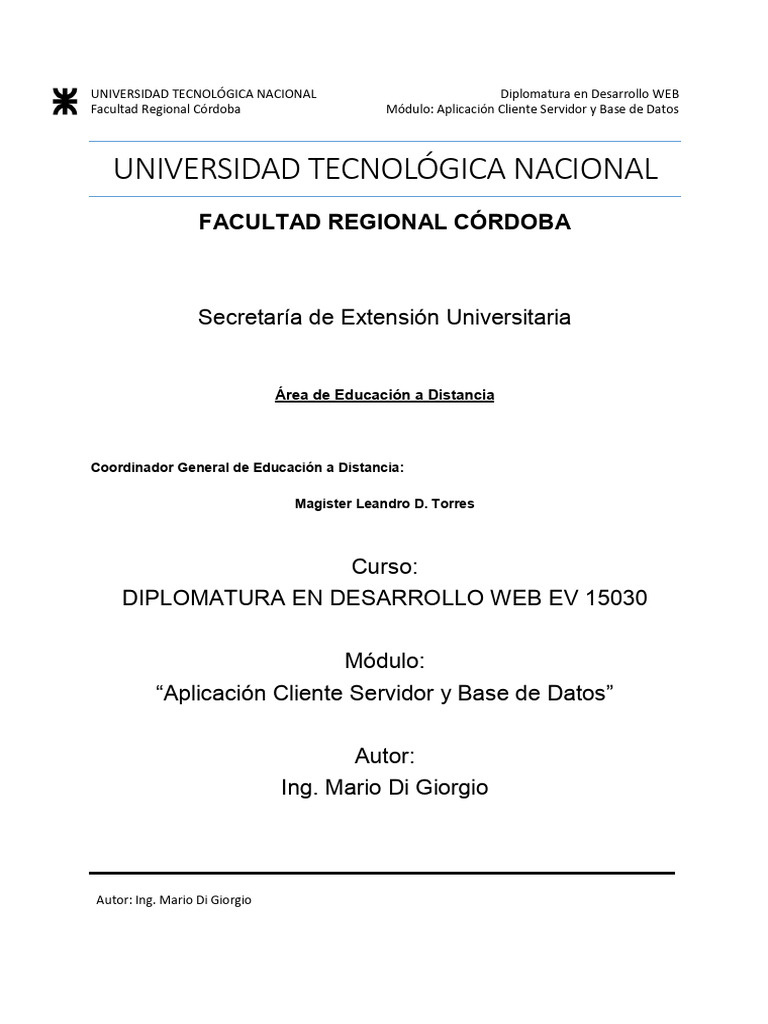 DIPLOMATURA EN DESARROLLO WEB EV 15030