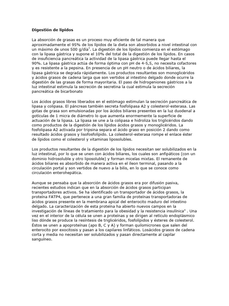 un máximo de unos 500 g/día3. La digestión de los lípidos comienza en el estómago