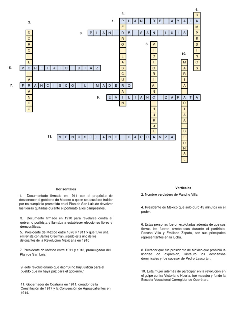 las tierras quitadas durante el porfiriato a los campesinos. 4. Presidente de México que solo duro 45 minutos en el