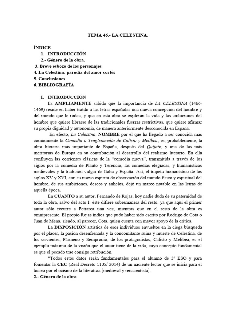Es AMPLIAMENTE sabido que la importancia de LA CELESTINA (1466-