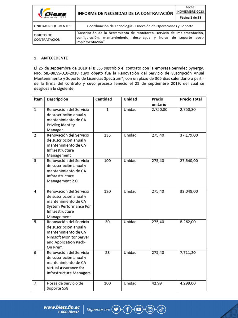 El BIESS cuenta al momento con las licencias del producto de Monitoreo Spectrum, mismas