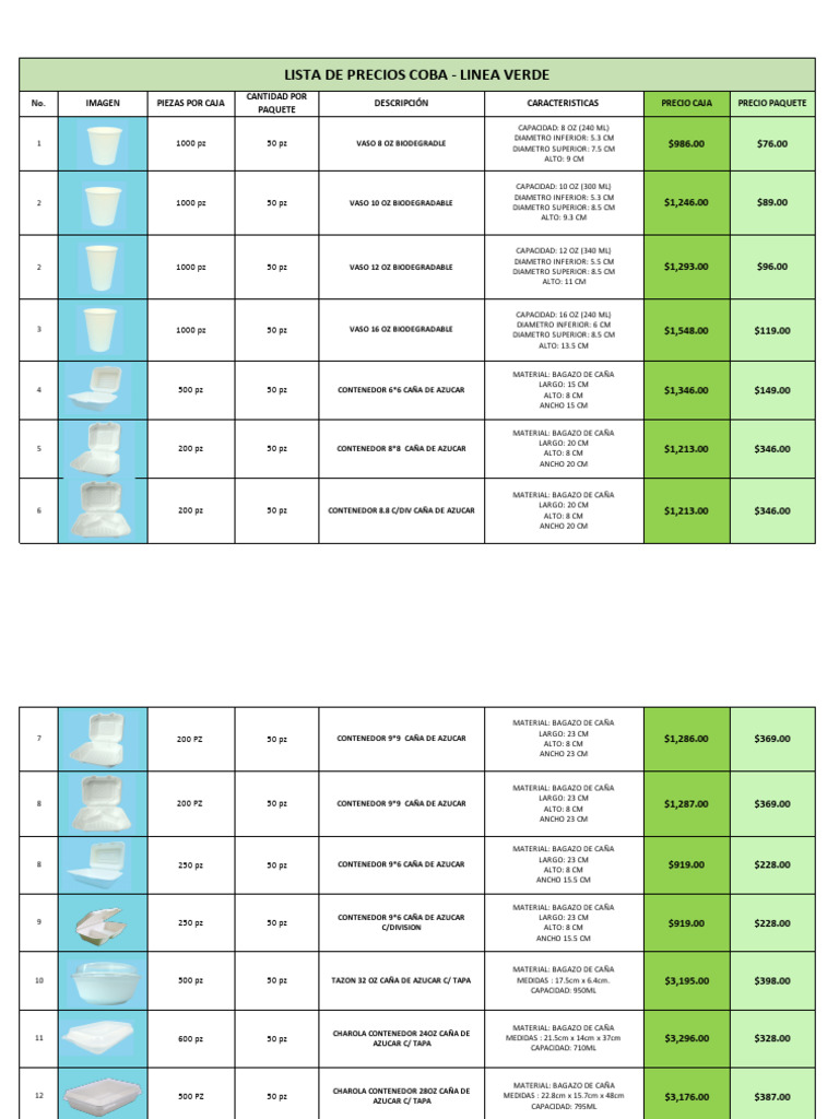 LISTA DE PRECIOS COBA - LINEA VERDE