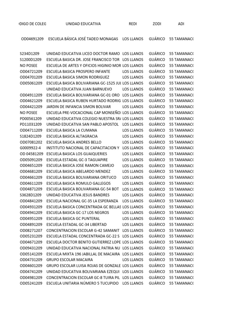 OD04701209 ESCUELA BASICA SIMON RODRIGUEZ LOS LLANOS GUÁRICO 355 TAMANACO