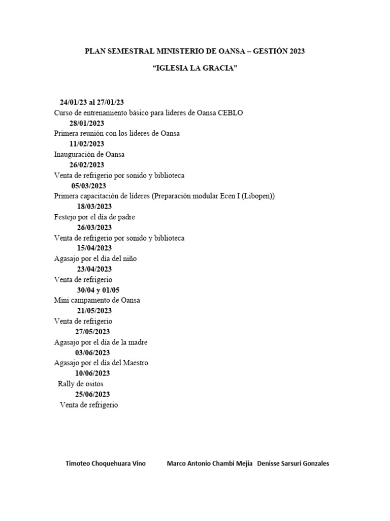 PLAN SEMESTRAL MINISTERIO DE OANSA – GESTIÓN 2023