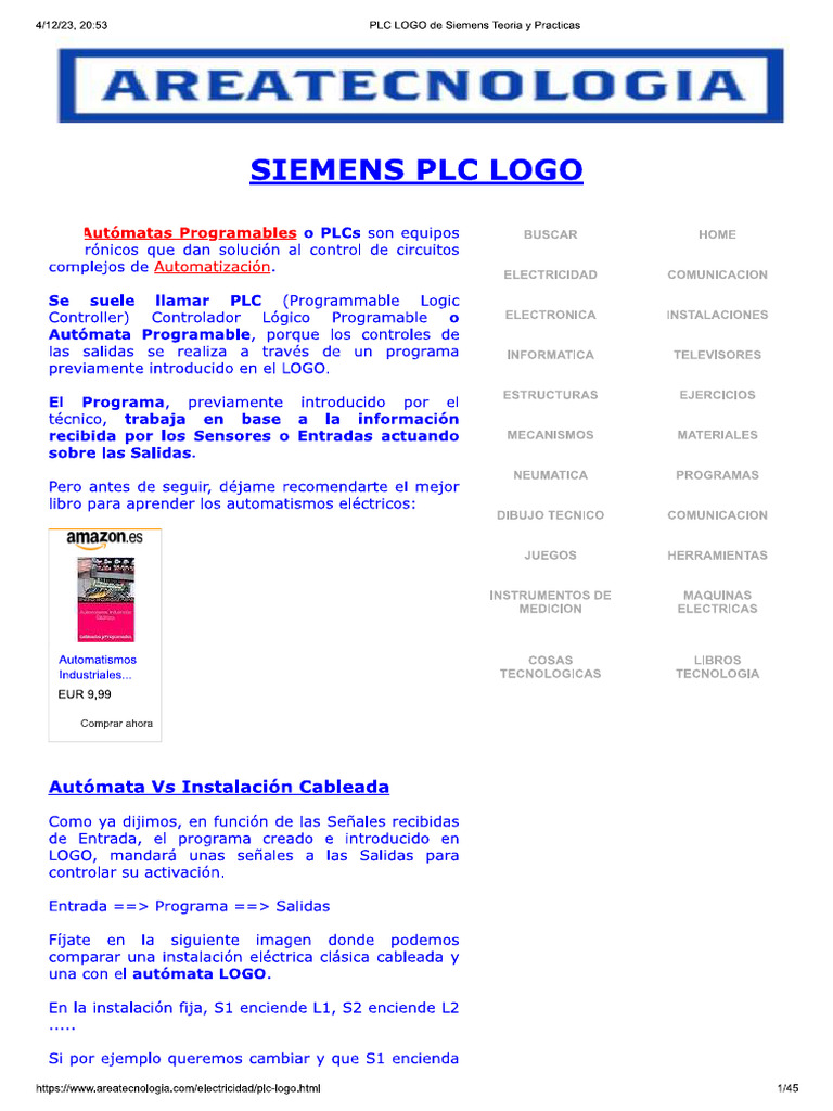 hitps:waw.areatocnologia.com/electricidadipleogo.html 3145419223, 2053 PLC LOGO de Siemens Teoria y Practcas