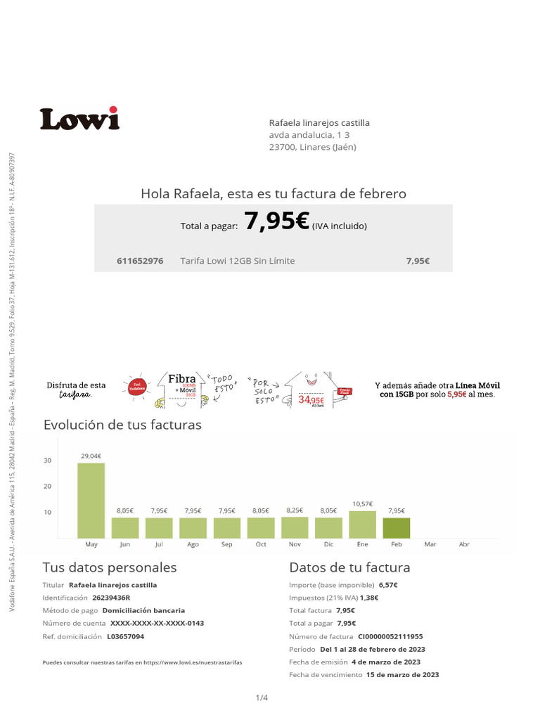 Puedes consultar nuestras tarifas en https://www.lowi.es/nuestrastarifas Fecha de emisión 4 de marzo de 2023